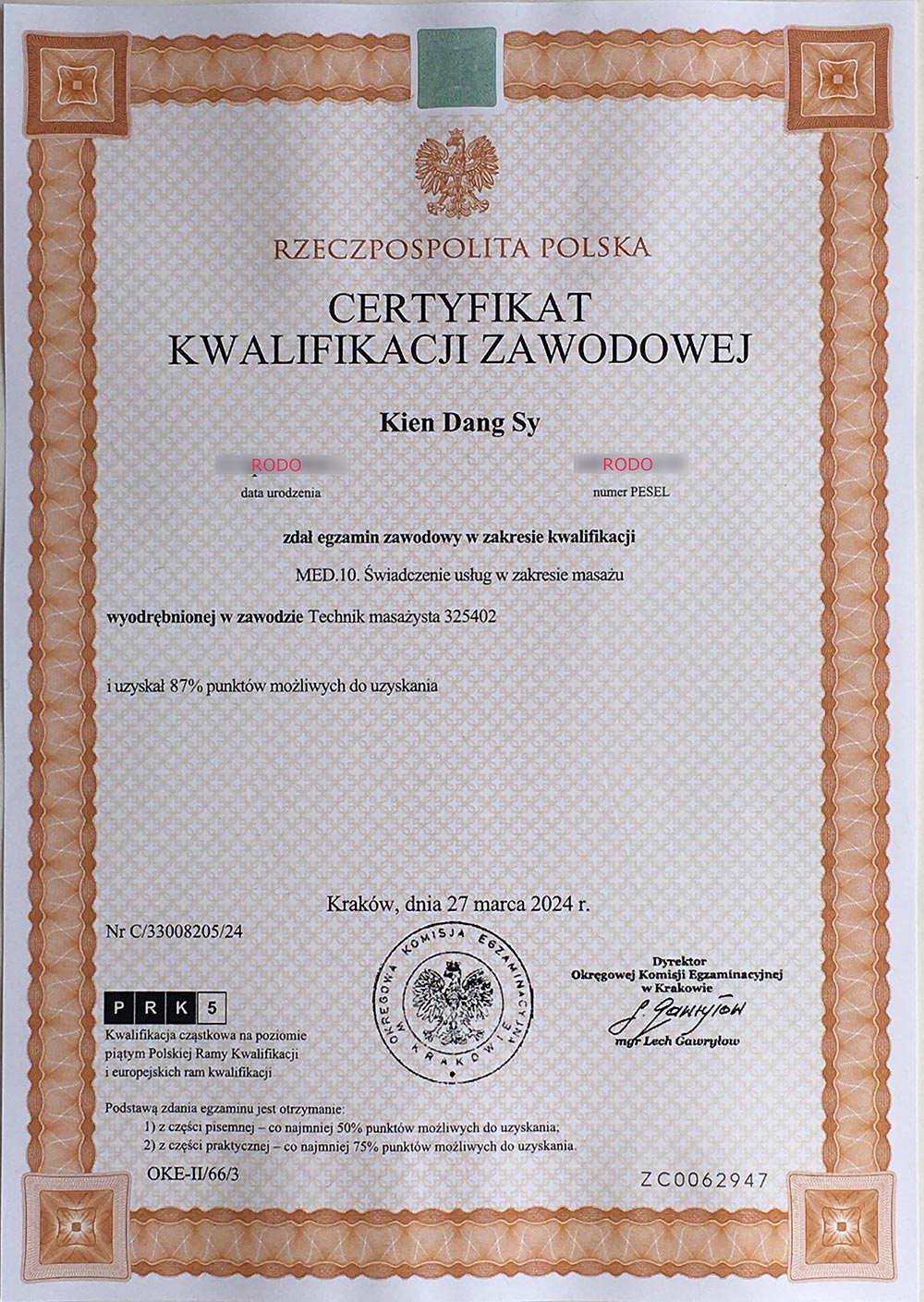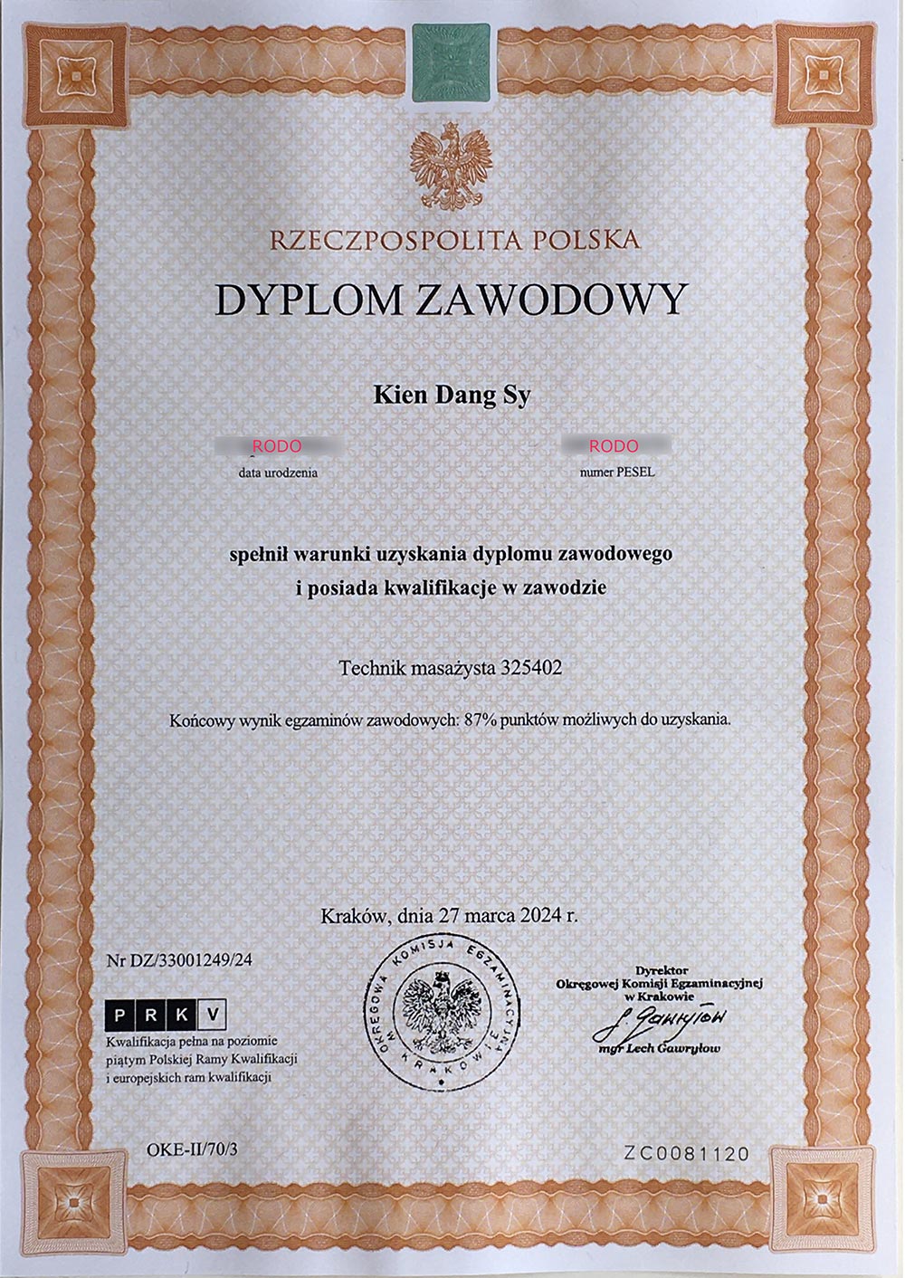 Przez lata doskonaliłem umiejętności masażu punktowego, w tym multirefleksologii Dien Chan. Jednak aby w pełni legalnie i profesjonalnie pracować w Polsce, postanowiłem zdobyć oficjalne kwalifikacje i ukończyłem szkołę medyczną na kierunku technik masażysta. To była jedna z najlepszych decyzji w moim życiu – dzięki niej mogę dziś pomagać innym w sposób profesjonalny, bezpieczny i skuteczny.